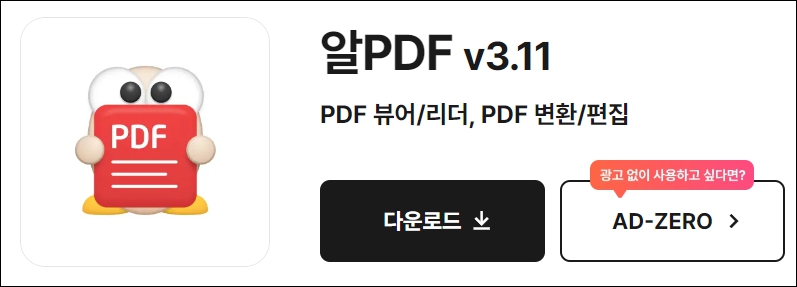 아래의 링크는 알툴즈의 알PDF v.3.11 최신 버전을 받을 수 있는 링크 입니다. 위의 글이 번거로우신 분들 이라면 아래의 링크에서 바로 알PDF 프로그램을 무료로 다운로드하실 수 있습니다.