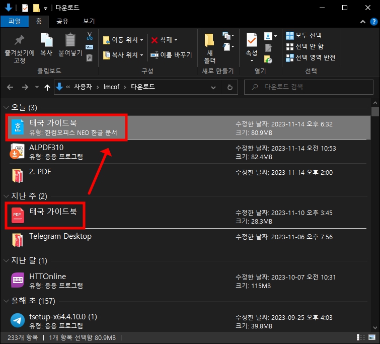 6) PDF파일을 한글파일로변환이 무사히 완료되었습니다. 이제 지정한 디렉토리에 가서 실제로 변환이 완료되었는지 체크해 볼까요?
