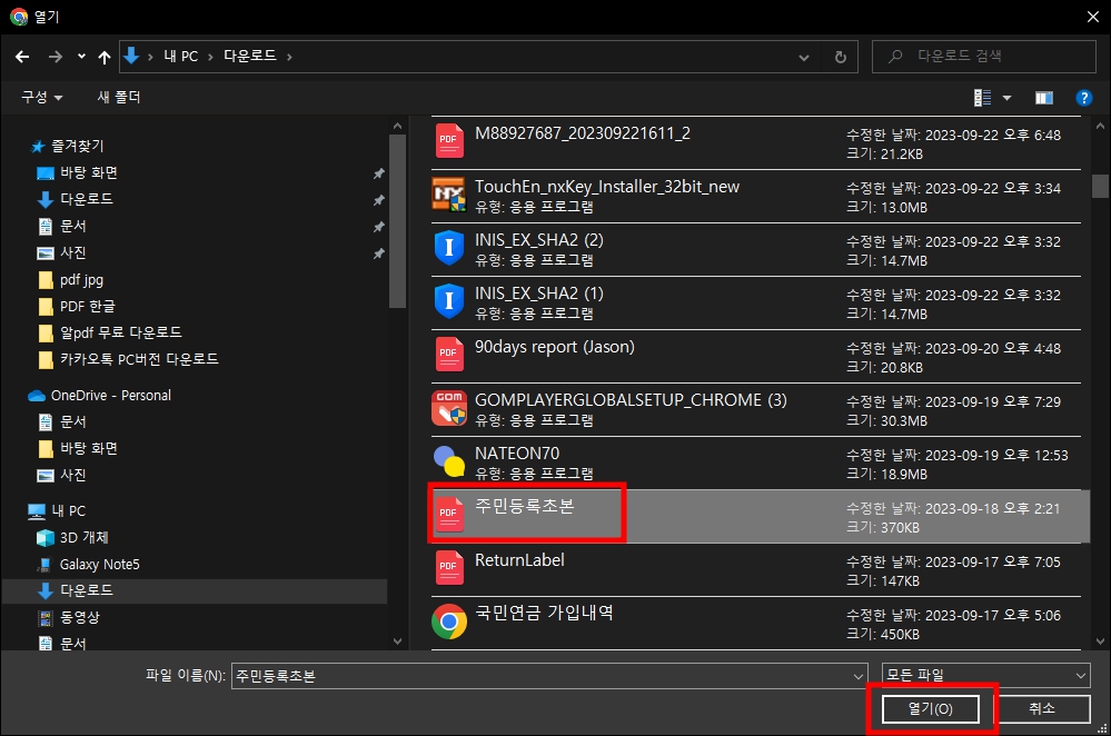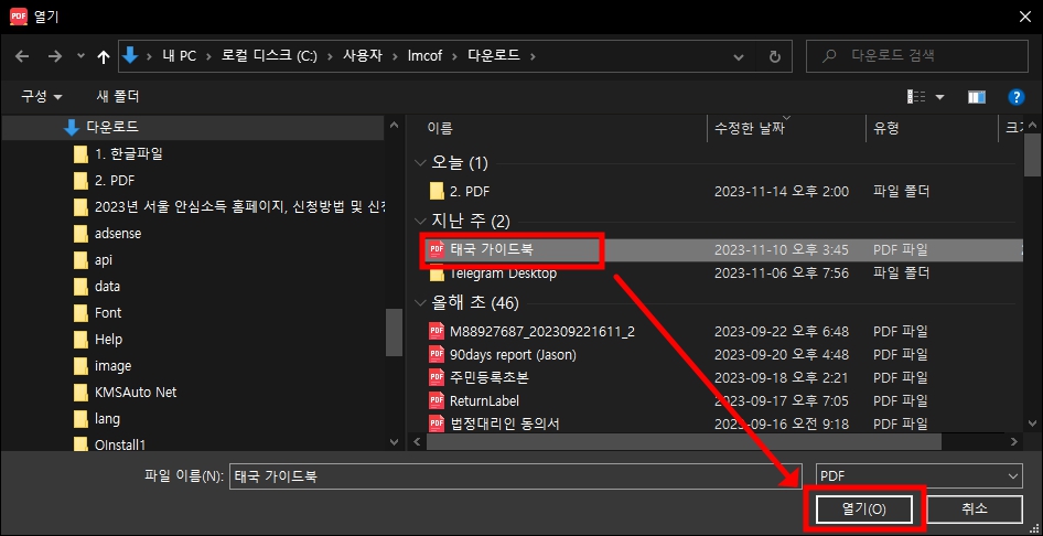 파일 탐색기가 나오면, 변환을 원하는 PDF 파일을 선택해 주세요.