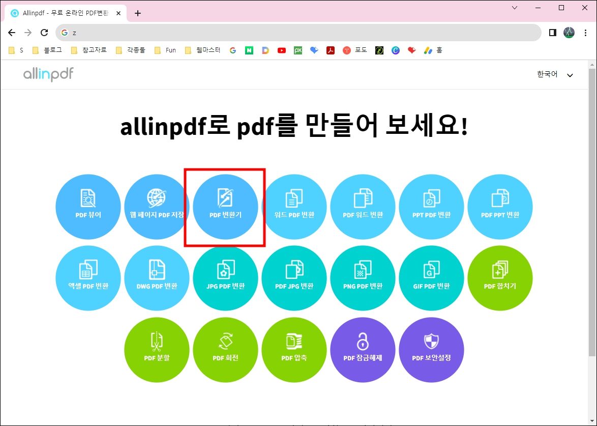 위의 링크에 방문하시면 아래와 같이 올인PDF 웹사이트로 이동을 하게 됩니다. 여기에서 PDF파일을 한글파일로변환하기 위해 PDF변환기를 선택해 주세요.